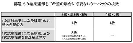 ※一次試験不合格により、2枚目のレターパックを使用しなかった場合は、1次試験成績表とともに返送をさせていただきます。